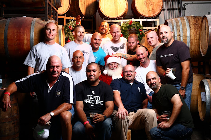 Now that they’ve posted the hi-res photos, it’s even funnier. Check out all the people who got their photo at Port / Lost Abbey with Santa last weekend. My favs: The Village People, The Bald Guys, and The Band.